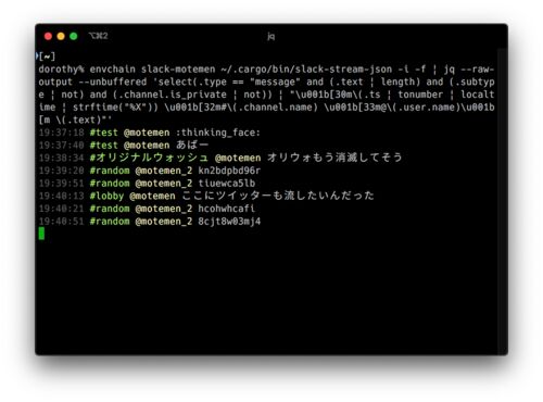 Slackはそのクライアントがそれなりに、かなりよくできていて、これでほとんど困ることはないんだけど、そうは言ってももうちょっとプログラマブルに取り扱いたいこともある。 そういう場合にもよいAPIが用意されていて、Real Time Messaging API ってのがあ…